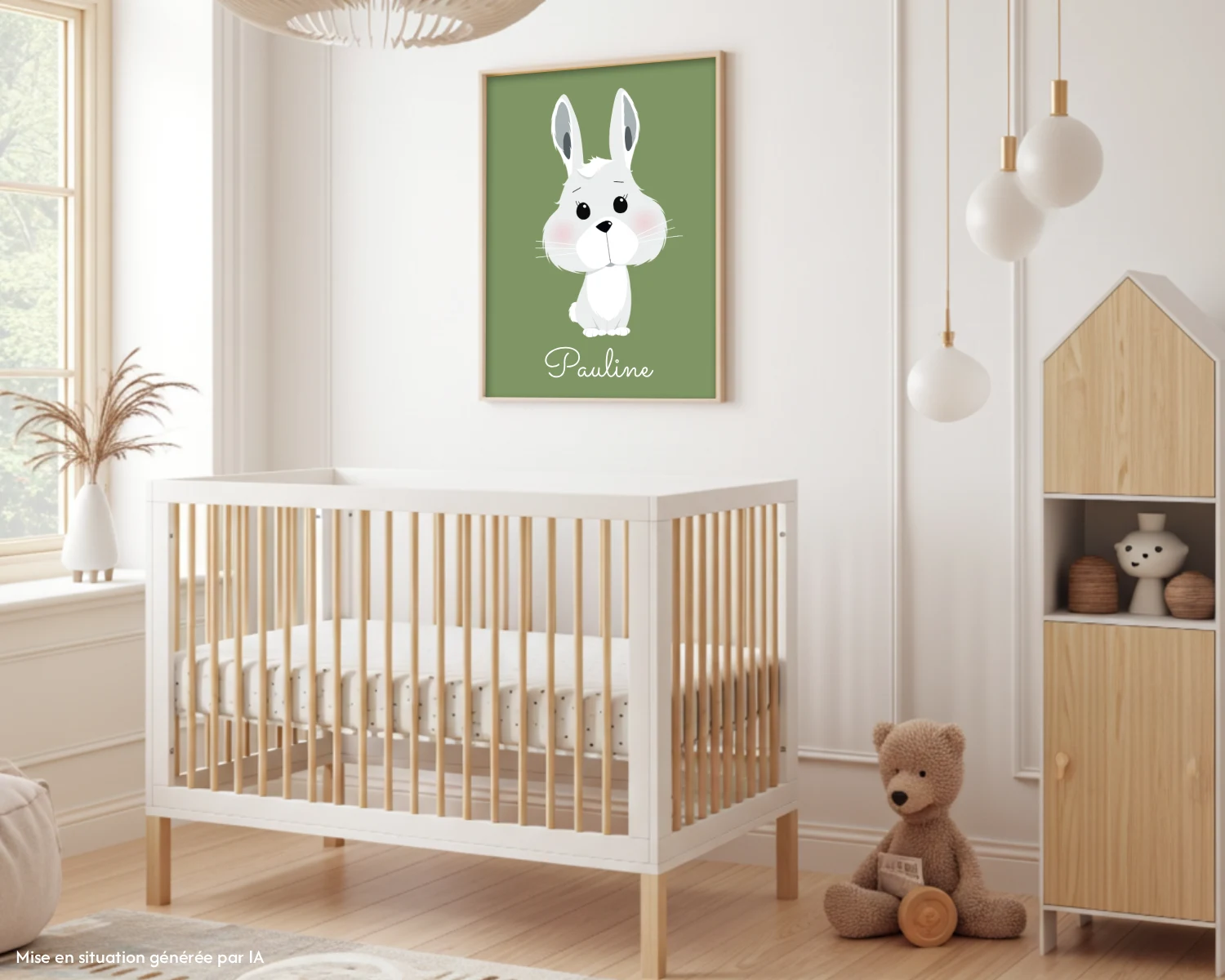 Affiche lapin chambre bébé – Décoration forêt personnalisée