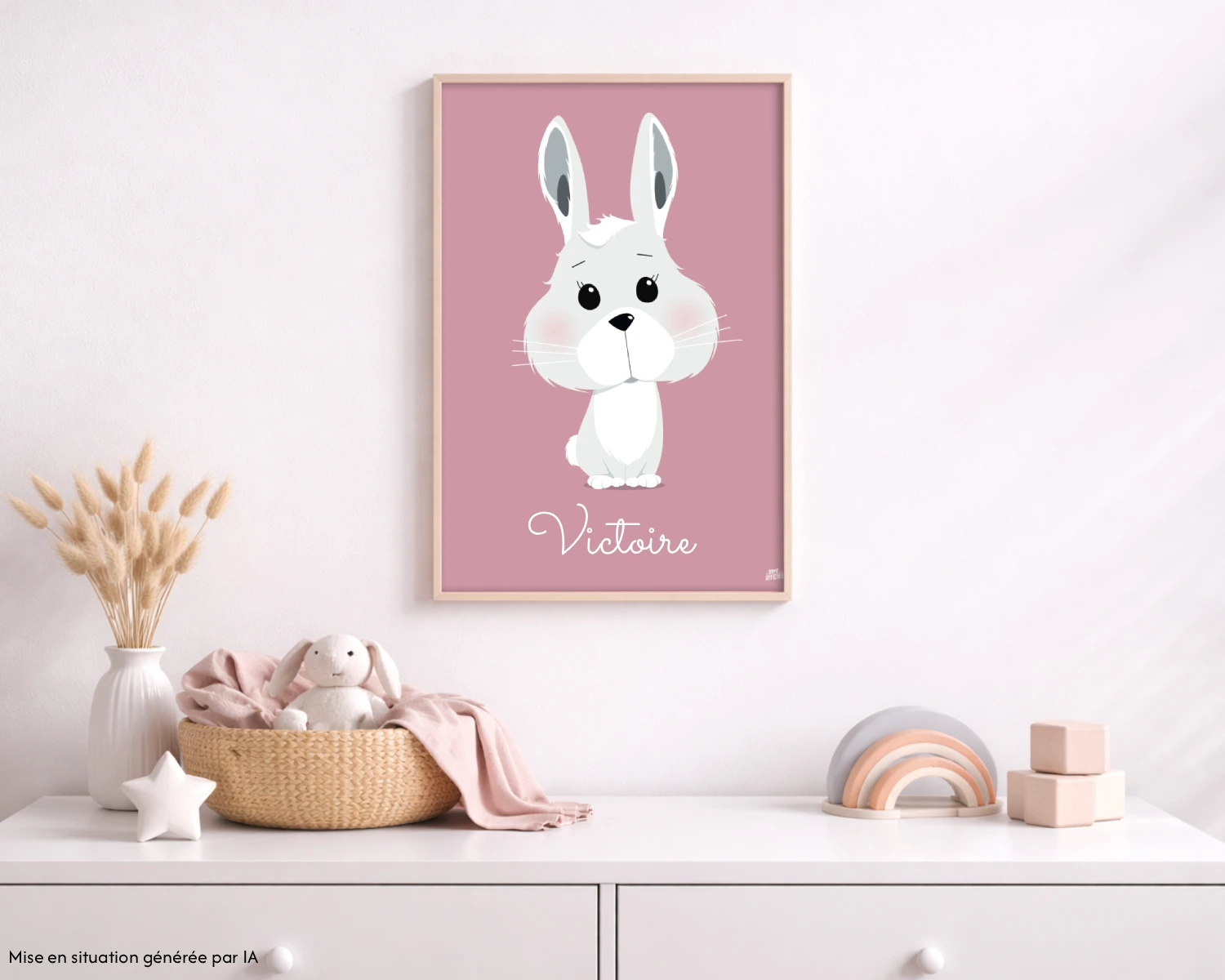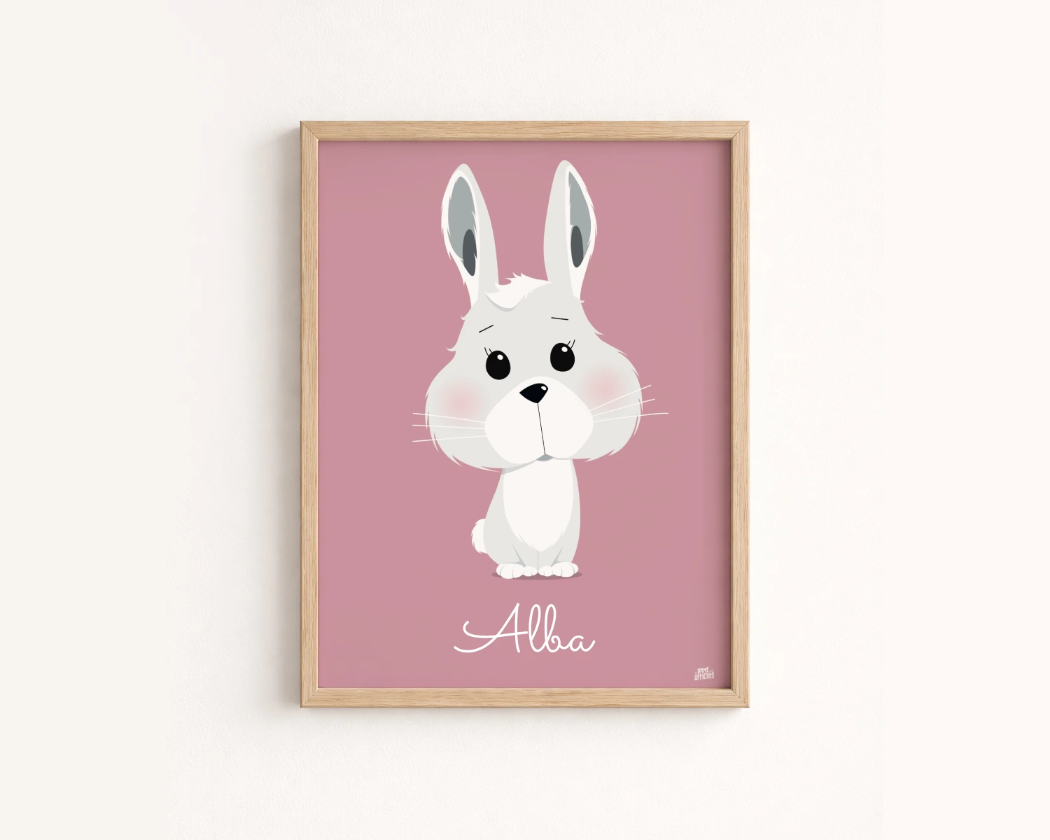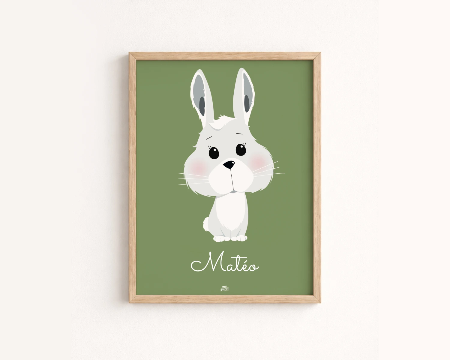 Pour personnaliser votre affiche lapin, indiquez simplement le prénom (ou surnom) dans le champ « Personnalisation ».
