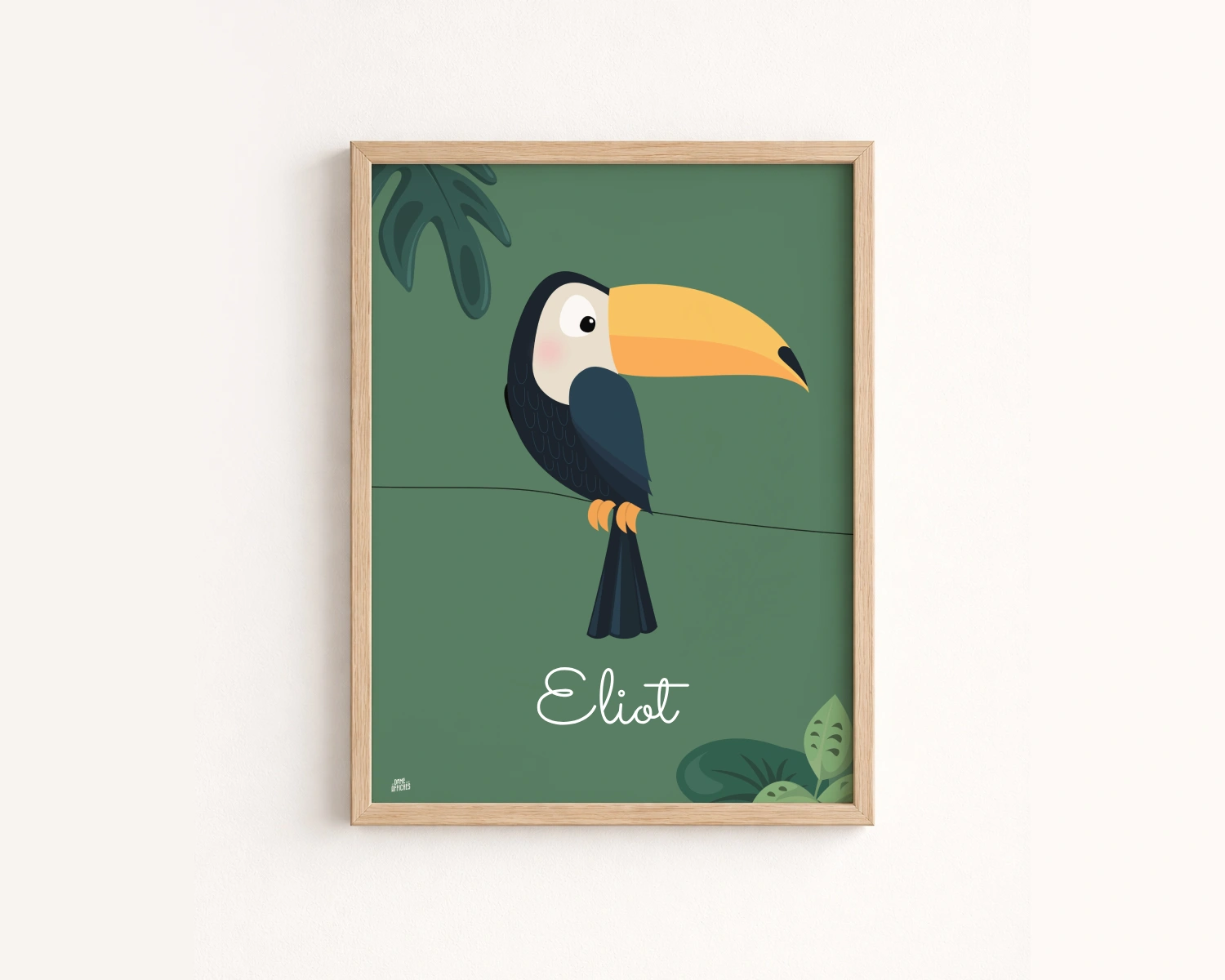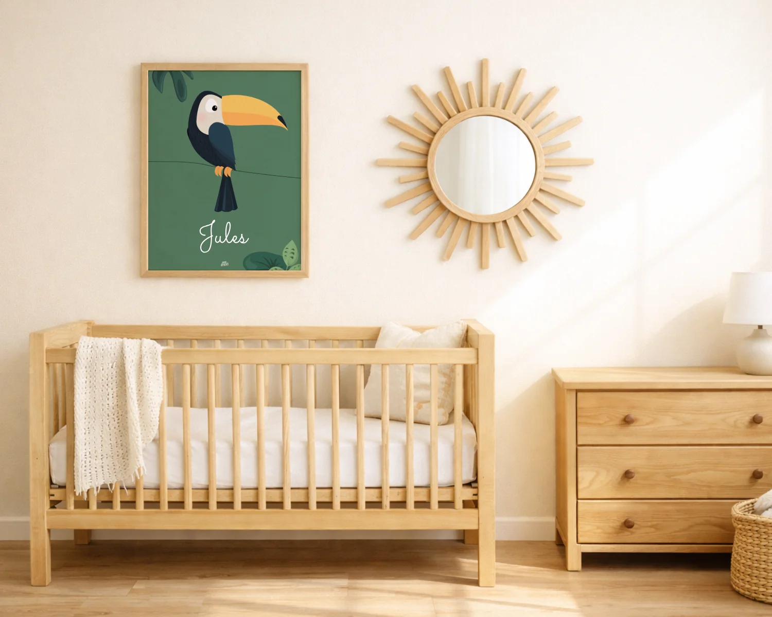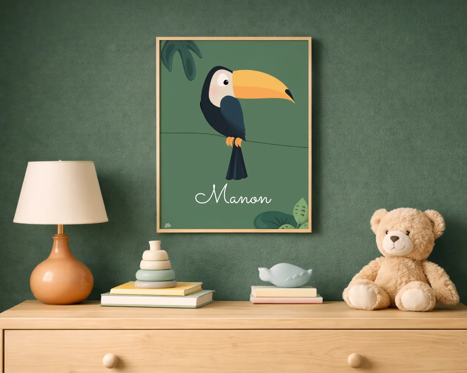 Affiche toucan chambre bébé – Décoration jungle personnalisée