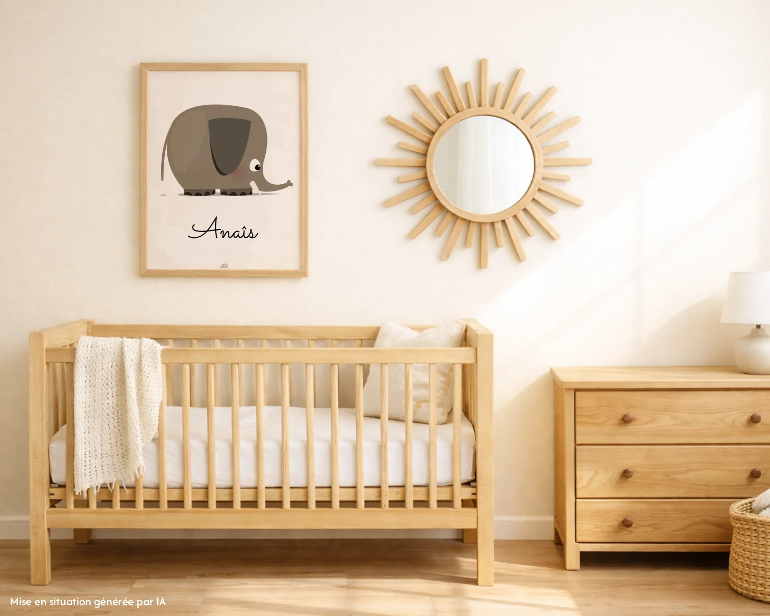 Affiche éléphant chambre bébé – Décoration savane enfant