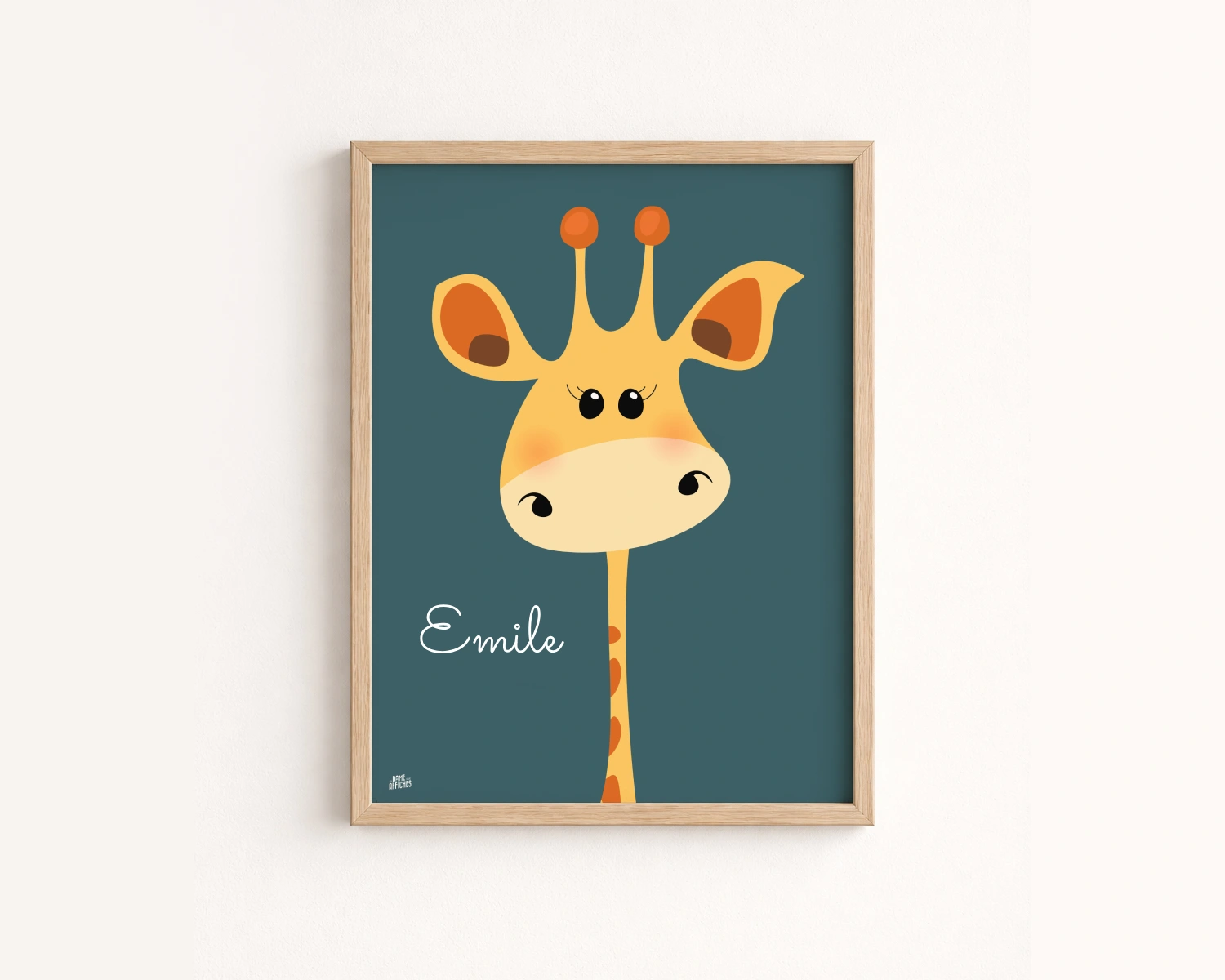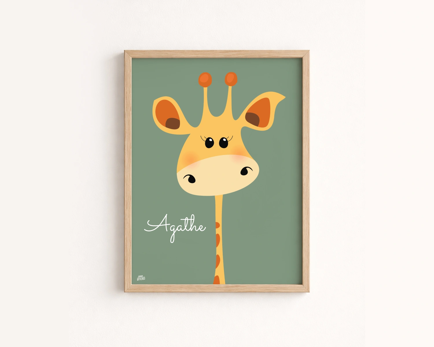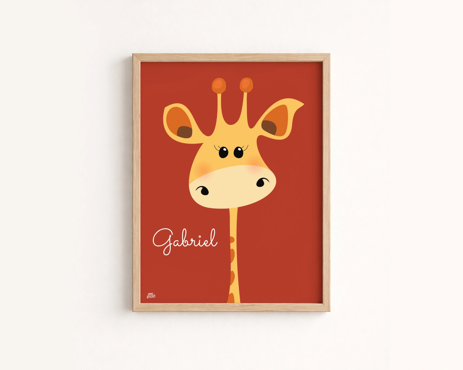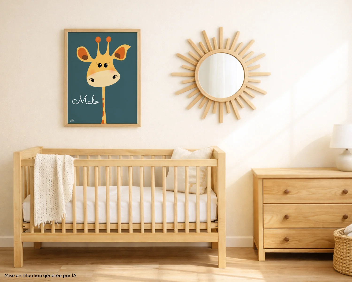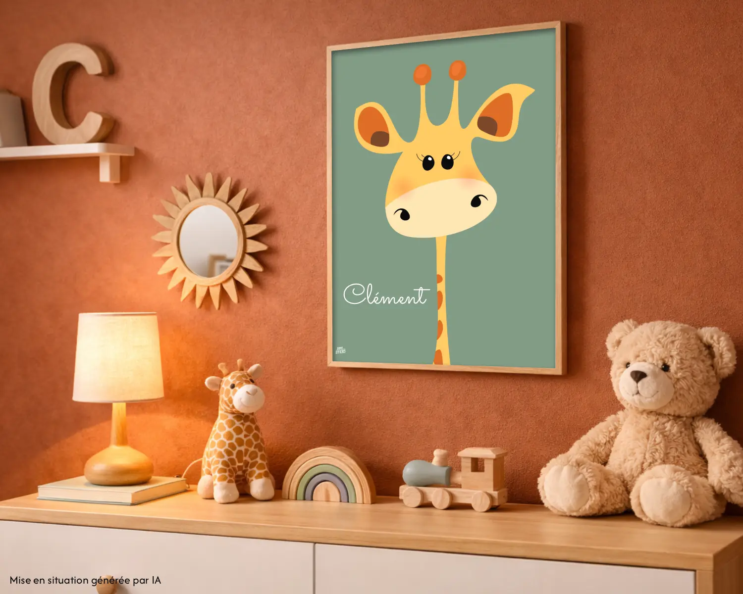 Pour personnaliser votre affiche girafe, indiquez simplement le prénom (ou surnom) dans le champ « Personnalisation ».